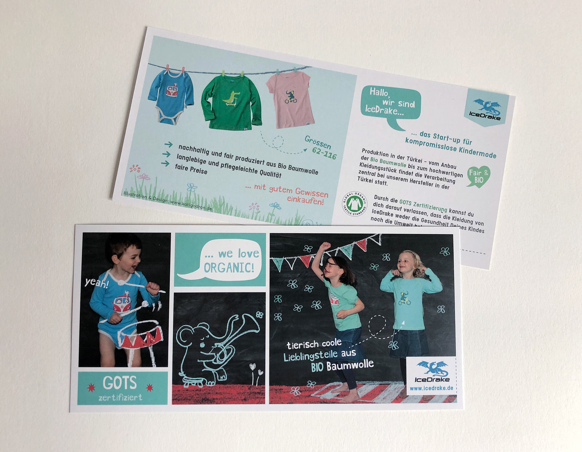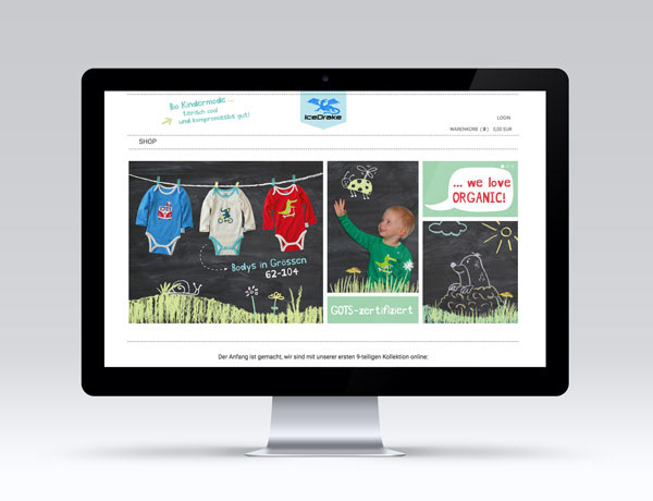 Für das Bio-Kindermode-Label Icedrake habe ich sowohl die Printprodukte, wie Flyer und Werbematerialien, als auch den Webauftritt gestaltet. Ausserdem habe ich mit viel Freude die Motive auf den Shirts entworfen und gezeichnet.