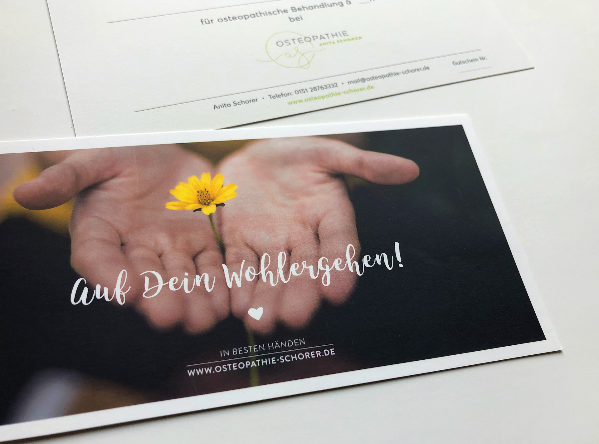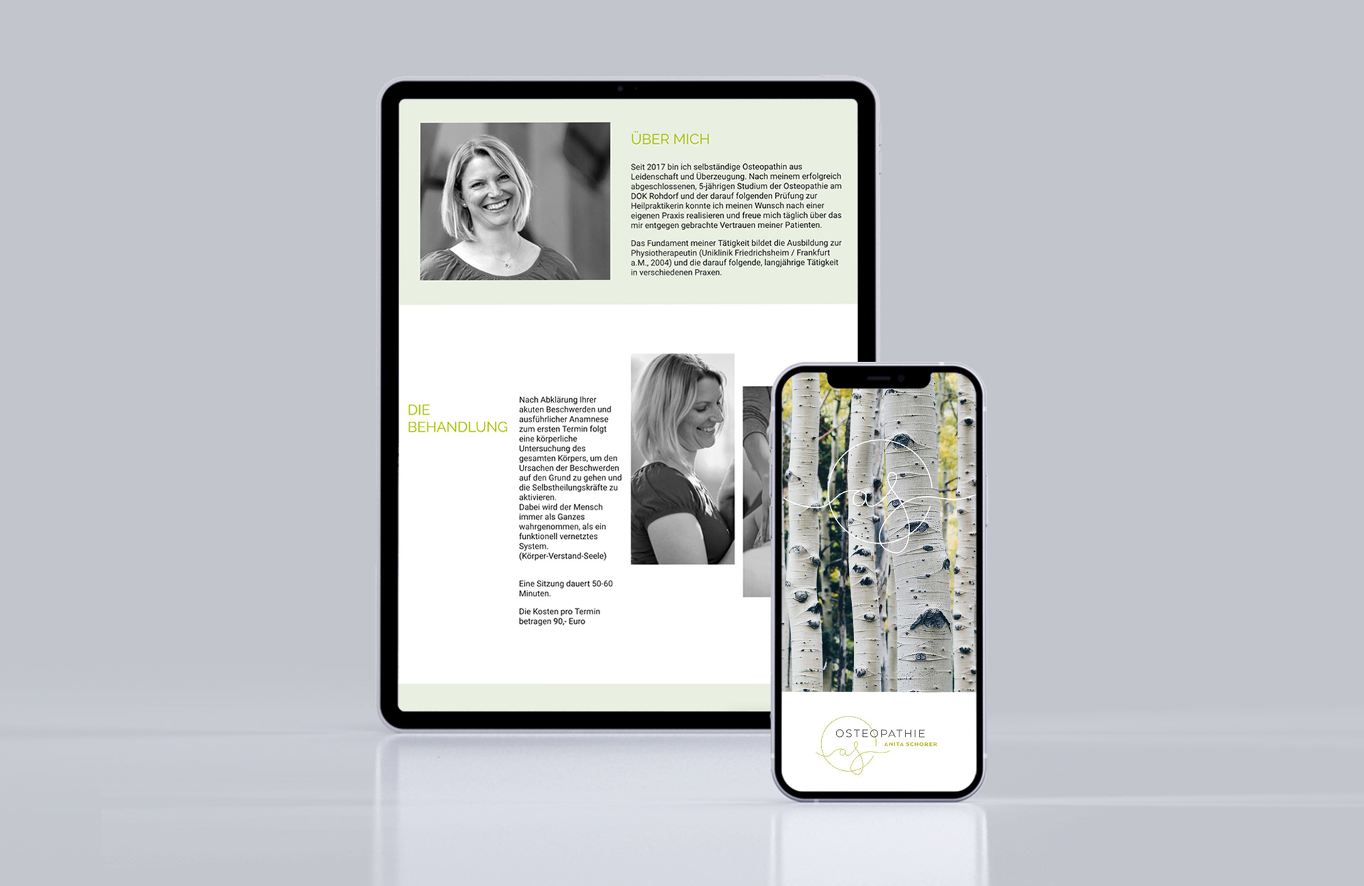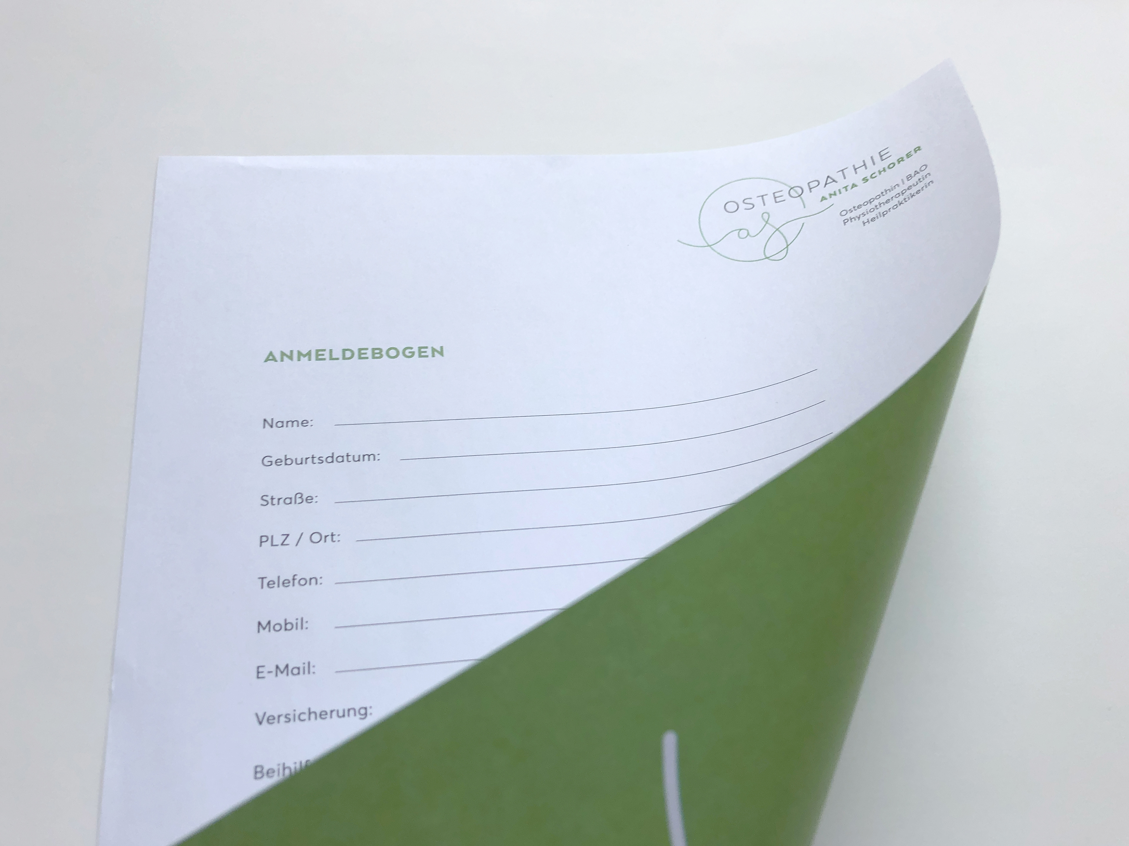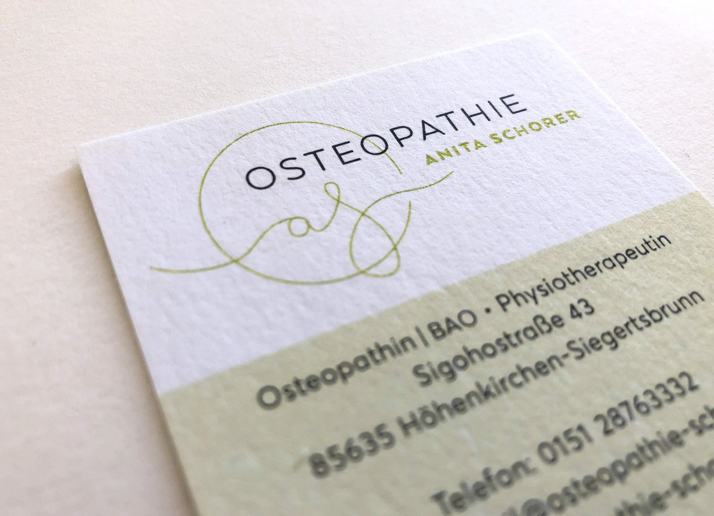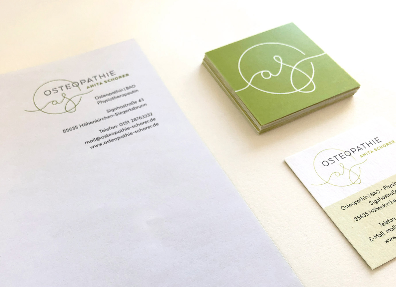 Für eine Osteopathie-Praxis entwickelte ich ein Logo und Erscheiungsbild, das den ganzheitlichen, fließenden Ansatz dieser Heilmethode widerspiegelt. Es findet sich auf der Geschäftsausstattung und der Website wieder.