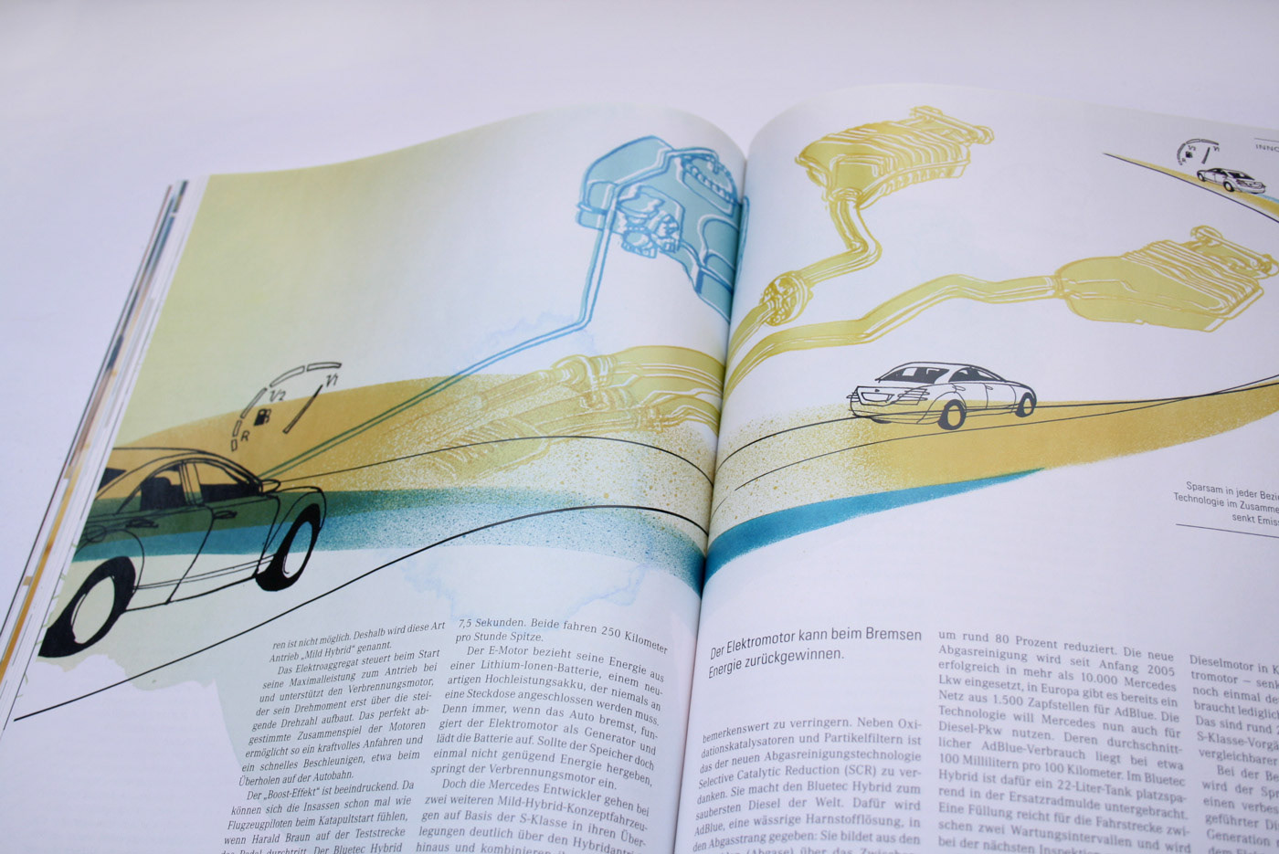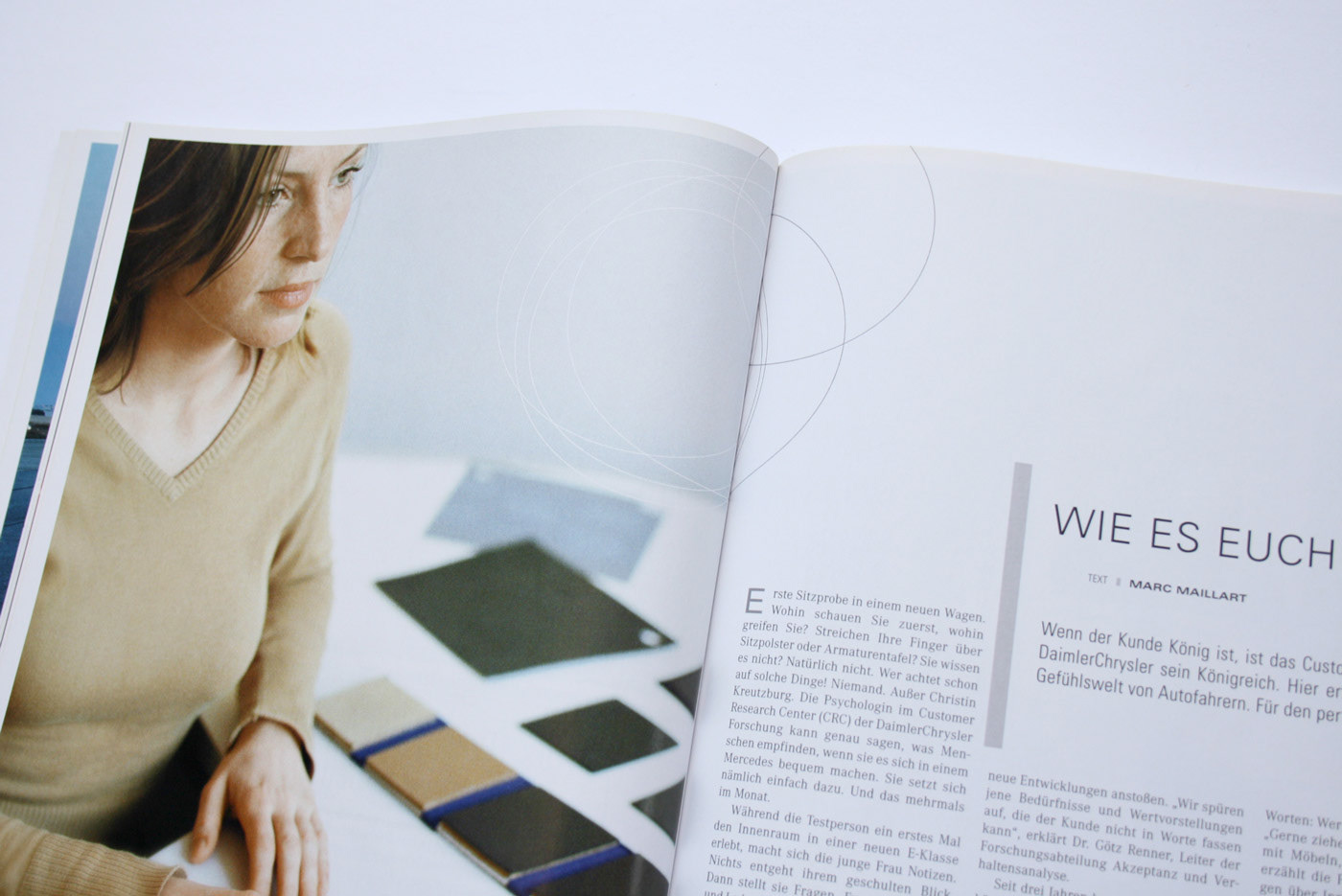 Newdesign des weltweit erscheinenden Kundenmagazins von Mercedes Benz in Zusammenarbeit mit Ursi Lerchenmüller. Nach erfolgreichem Pitch übernahm ich für zwei Jahre die Artdirection in Zusammenarbeit mit dem Redaktionsbüro Premiumcom.